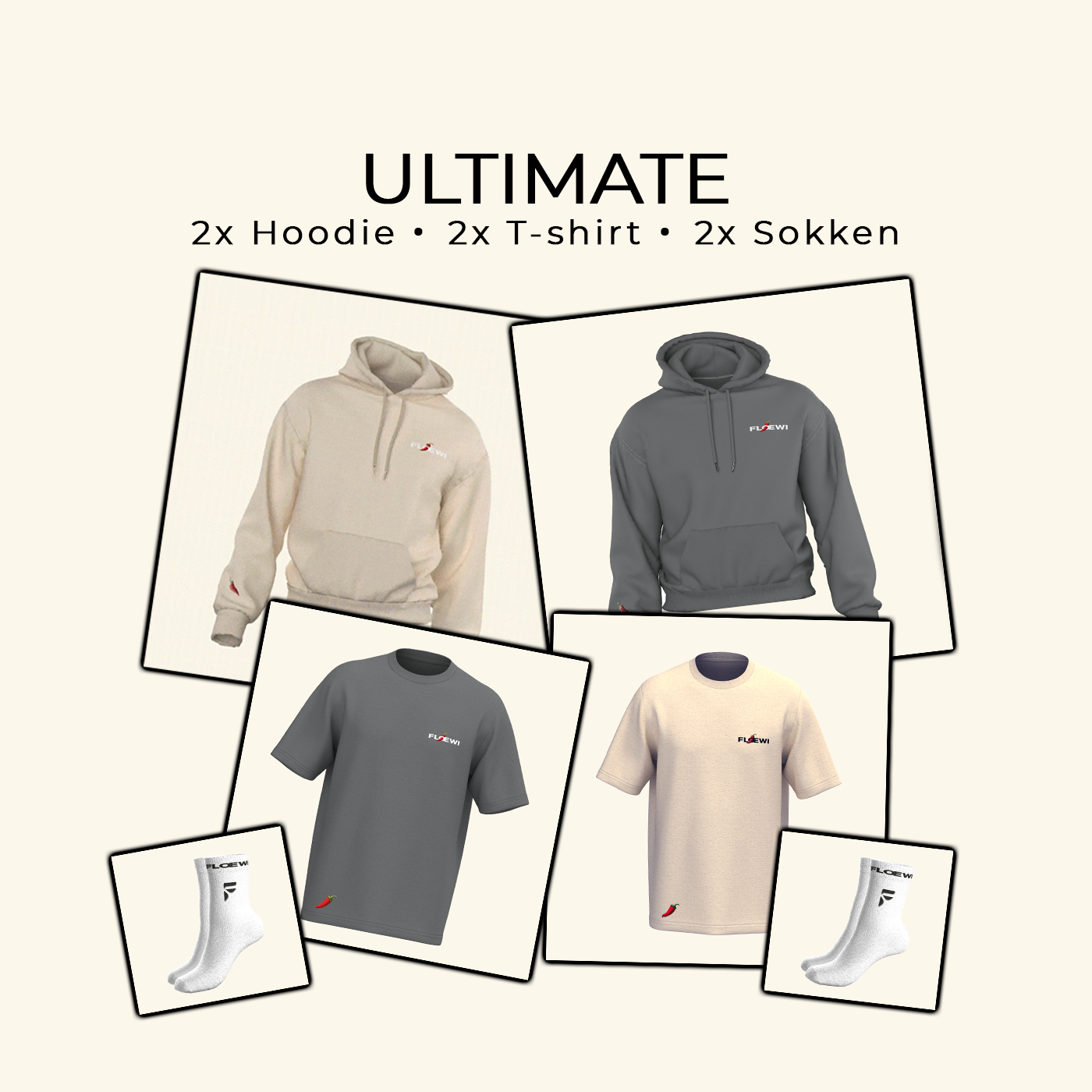 Bij Floewi is mode meer dan kleding—het is een statement. Ga all-in met een set voor afwisseling: twee zachte hoodies, twee cleane T-shirts en sokken om de look af te maken. Mix kleuren, deel of houd alles zelf—unisex, tijdloos, moeiteloos.